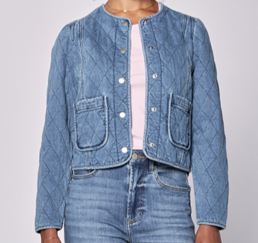 Elevate your cool-weather game with this quilted denim jacket, featuring snap buttons that add a fun pop every time you close it. The sturdy buttons keep the jacket securely fastened while giving it that classic, edgy vibe. Perfect for layering or standing out on breezy days, this jacket turns simple denim into a playful statement piece.